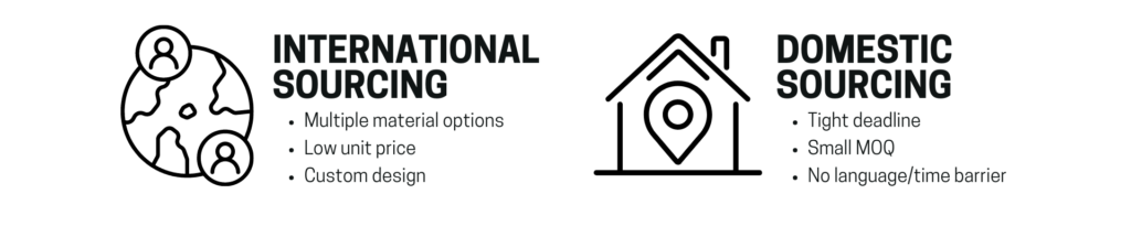 In relation to the MOQ, overseas suppliers will require more time as products are manufactured in bulk. Additionally, you’ll need to account for shipping time, which lengthens the production timeline. You also need to consider the political situation of the country—political instability may cause disruptions to the supply chain. Which is why planning ahead is important when sourcing internationally. If you take unforeseeable circumstances into consideration and plan your timeline accordingly, you’ll be at an advantage.