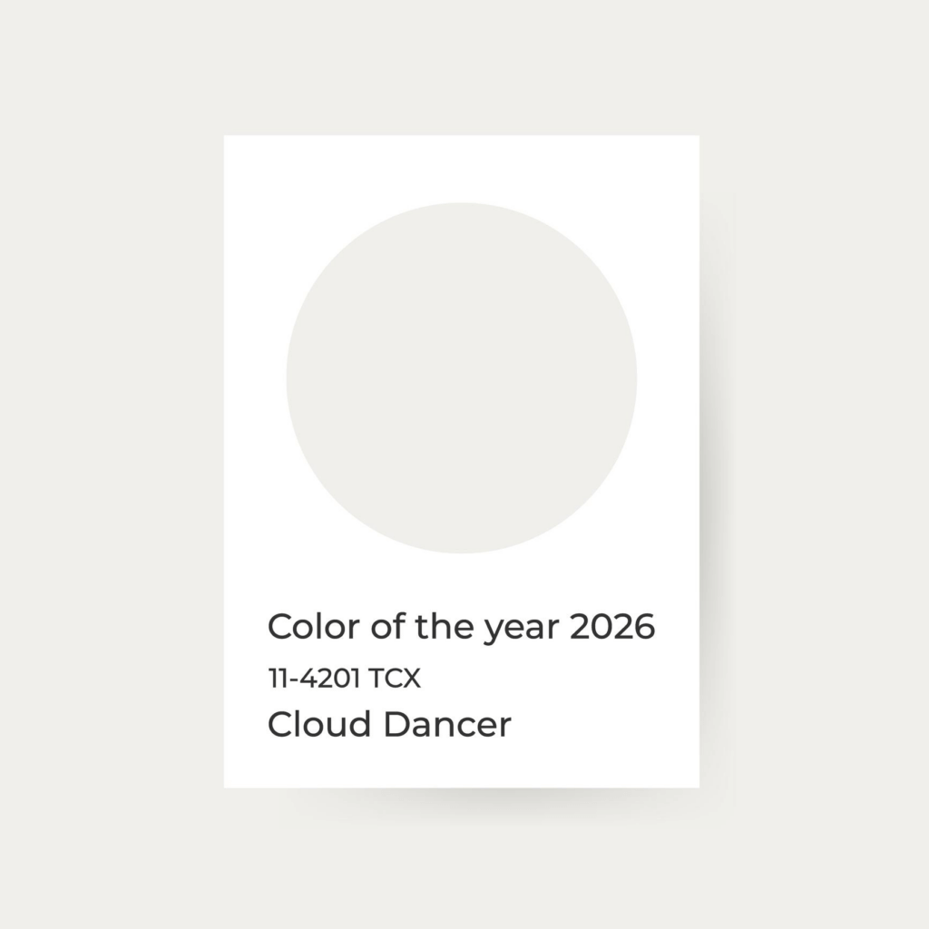 For 2026, Pantone selected PANTONE 11-4201 Cloud Dancer as its Pantone Color of the Year.