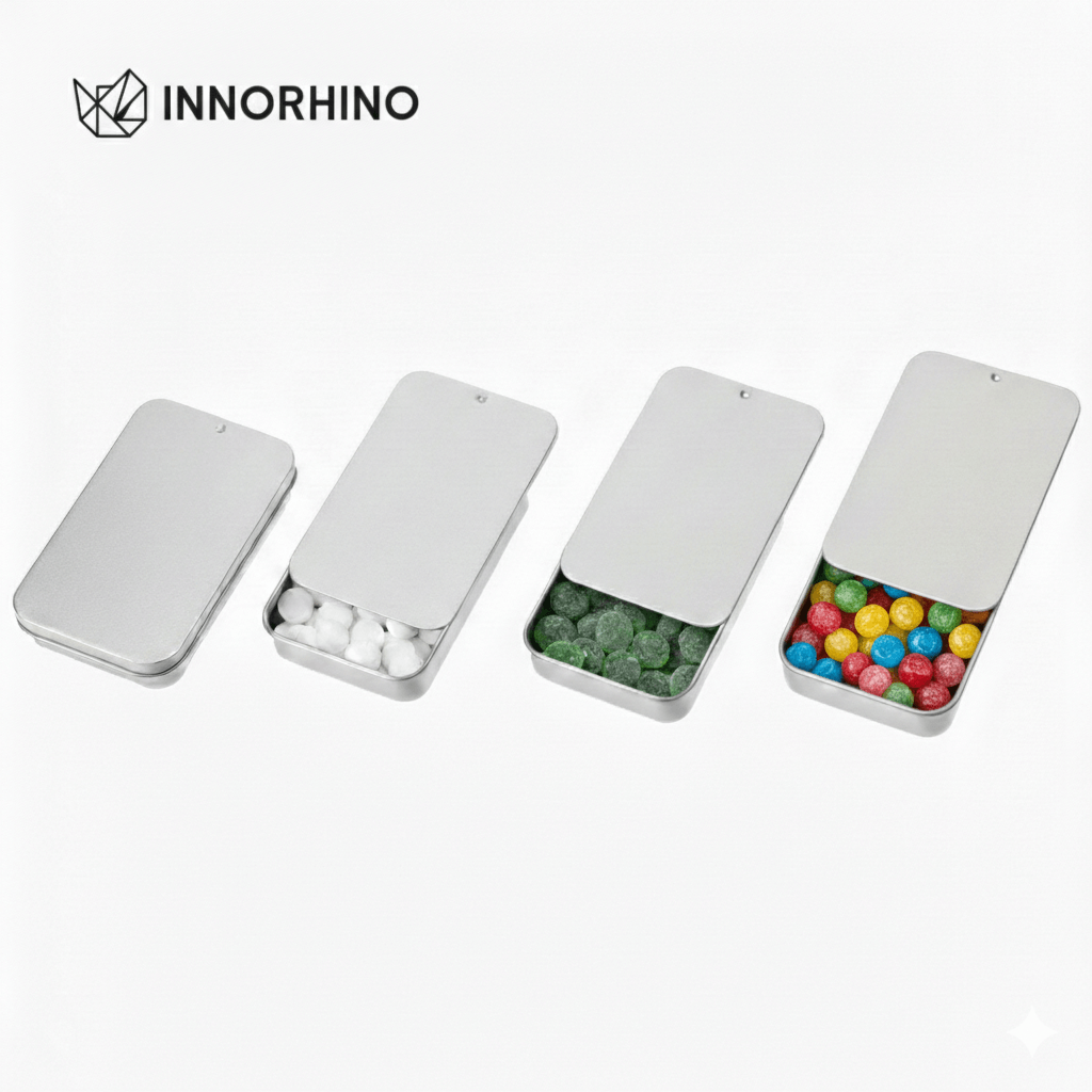 Key Features : Food-Grade Safety: Made of high-quality tinplate, safe for direct contact with supplements and mints. Light Blocking: 100% opacity protects light-sensitive vitamins (like B-complex, Fish oil) from oxidation. One-Hand Operation: Smooth slide mechanism allows for quick access while driving or working. Ultra-Portable: Slim profile (15mm) fits perfectly in pockets without bulging.