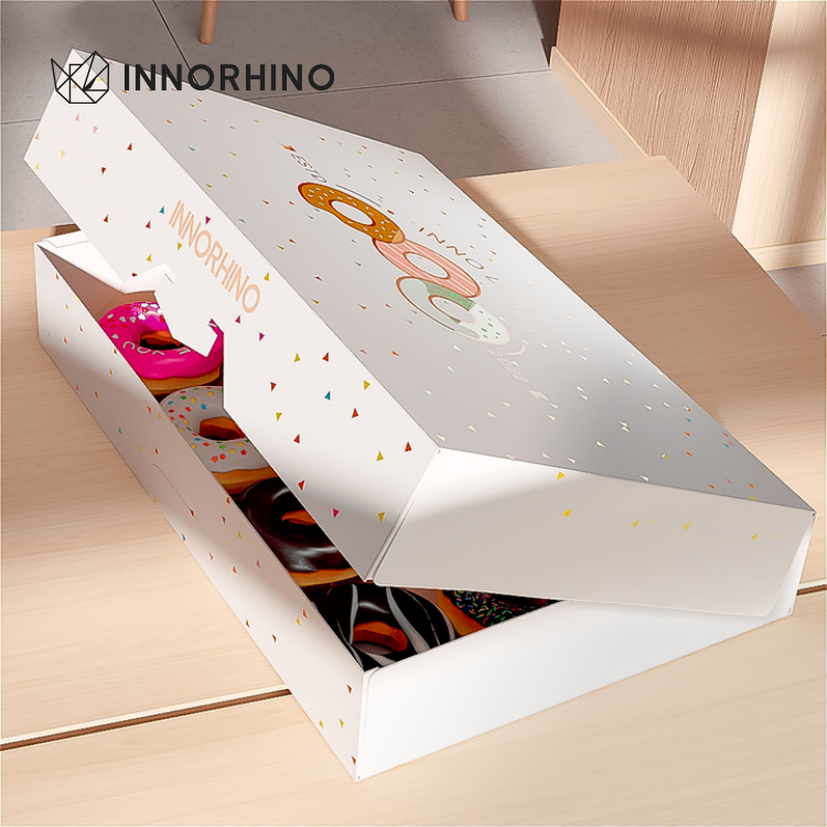 • This flip-top box is a perfect choice for your pastry products, and the front tuck tab closure makes the box more secure.