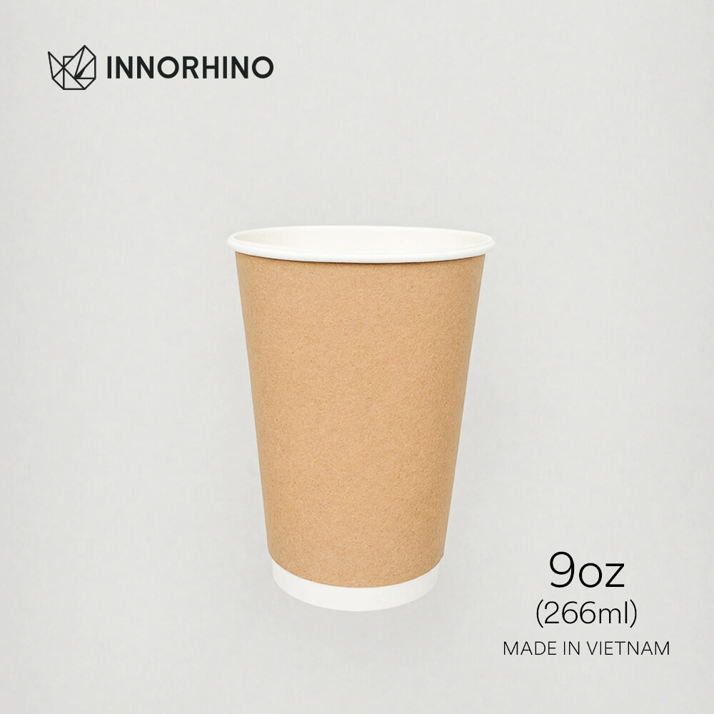 Our Vietnam made Kraft Double-Wall Paper Hot Cups are designed to provide an optimal drinking experience for both hot and cold beverages. The double-wall construction ensures that the exterior remains comfortable to the touch, eliminating the need for additional sleeves. Crafted from premium, thick paper, these cups are both functional and stylish, making them ideal for various settings, from coffee shops to ice cream parlors.